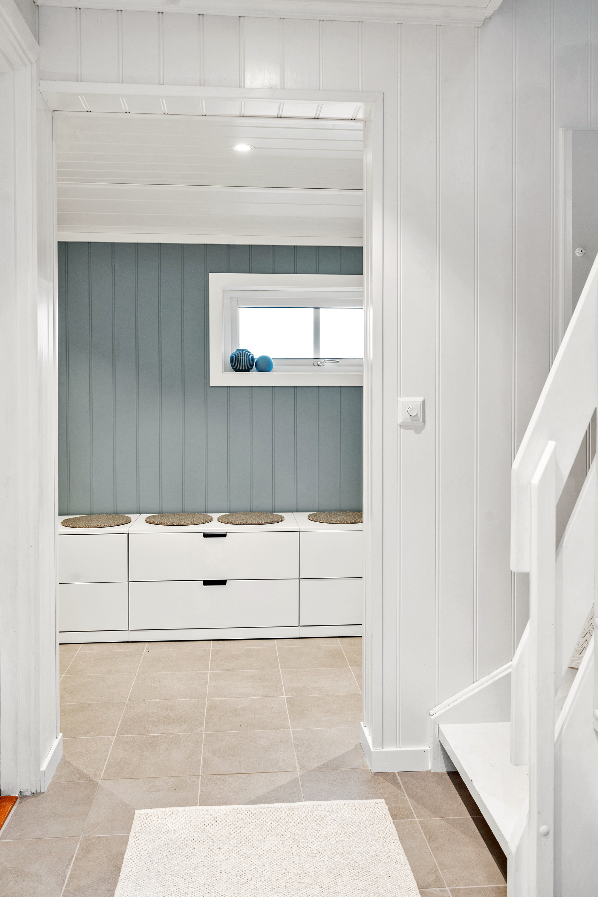 Vi bygde på enden av boligen, i 3 etasjer. Videre så innredet vi blant annet med spesialtilpasset kjøkken med høy standard, rene linjer og moderne detaljer.